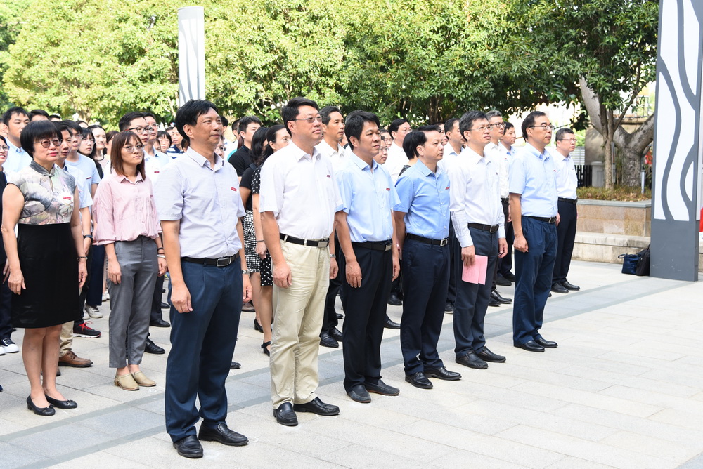 为庆祝新中国成立70周年,激发全校师生爱国主义热情、增强民族责任感,9月30日上午,学校在桂山校区举行“同升国旗,同唱国歌”--庆祝新中国成立70周年主题活动。校领导、各部门负责人、桂山校区师生近千人参加活动。