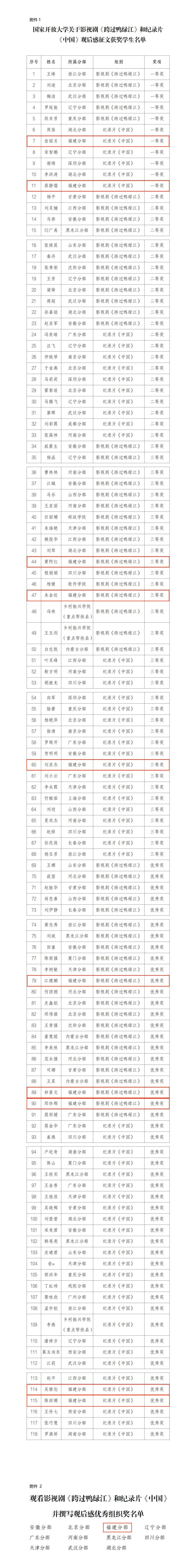 日前,国家开放大学公布了影视剧《跨过鸭绿江》和纪录片《中国》观后感征文获奖名单,我校报送的10项作品,全部获奖,分别为2个一等奖、3个三等奖、5个优秀奖,福建开放大学获优秀组织奖。