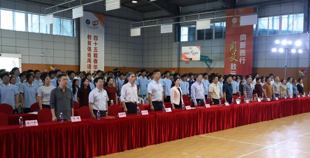 青春如歌,激情似火。5月8日下午,正值广大青年共同学习贯彻习近平总书记重要讲话和给谢依特小学戍边支教西部计划志愿者服务队队员回信精神之际,我校在桂山校区举办以“传承五四薪火 唱响红色旋律”为主题的2025年五四表彰大会暨歌咏比赛。校党委书记庄莉、党委副书记马成斌出席活动,党政办公室、学生处、校团委和职业学院负责人、学校2024年度受共青团表彰的先进集体和个人、2025年新接收团员以及团员代表600余人参加了会议。会议由校团委书记黄生春主持。