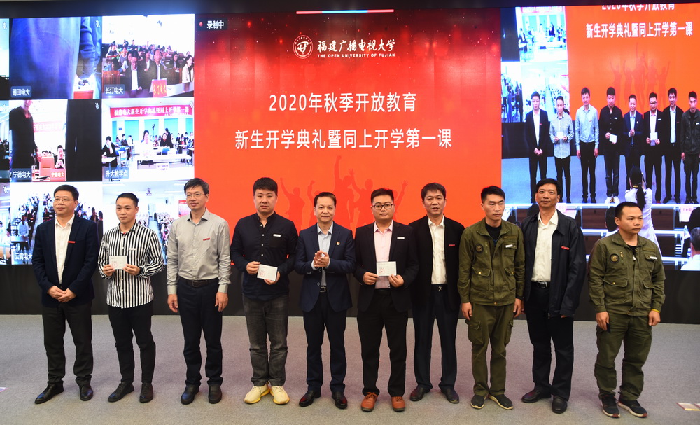 在嘹亮雄壮的国歌声中,福建广播电视大学2020年秋季开放教育新生开学典礼暨同上开学第一课正式启幕。各地电大领导分别在当地为2019年度国家开放大学奖学金、“希望的田野”奖学金获奖代表颁发了获奖证书。本科新生代表、专科新生代表、在校生代表和教师代表在当地电大发言。各地电大校领导为新生代表佩带校徽、颁发学生证,新生同步进行了入学宣誓。