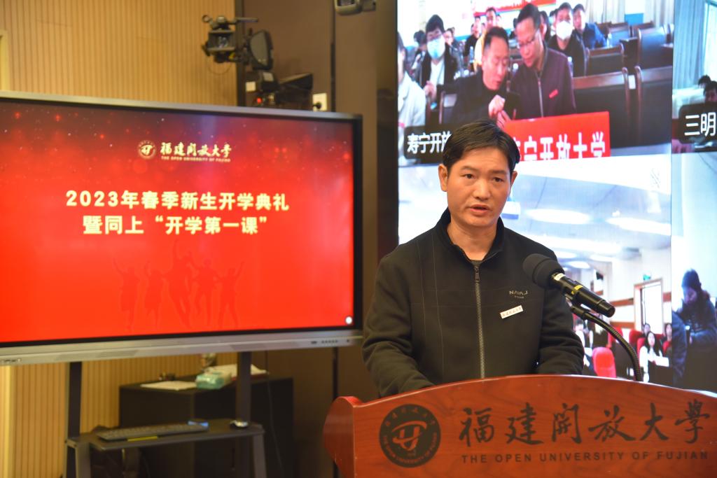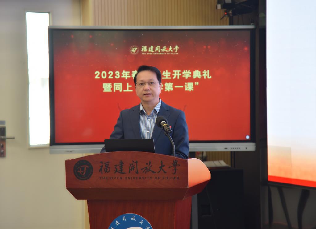 校党委书记陈兴炎以《在中国式现代化福建实践中成就精彩人生》为题,为新生上“开学第一课”。他从中国式现代化的历史逻辑、中国式现代化的中国特色和本质要求、中国式现代化的重大原则三个方面阐释了如何正确把握中国式现代化的科学内涵;介绍了福建开放大学的发展历史和办学特色,从提高知识技能水平、提升就业创业能力、磨练做人做事本领、增强价值观念认同四个方面,勉励同学们向优秀校友学习,在中国式现代化福建实践中成就精彩人生。