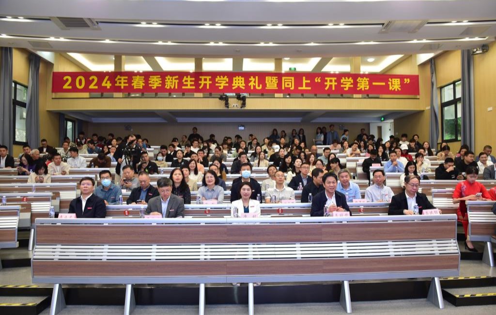 4月13日上午,学校举办2024年春季新生开学典礼,并同上“开学第一课”。校领导庄莉、吴国荣、马成斌、吴建铭、李正光,学校相关部门负责人和师生代表在桂山校区主会场,全省各市县开大、教学点的师生通过分会场和收看线上直播方式参加开学典礼。典礼由校党委副书记、校长吴国荣主持。