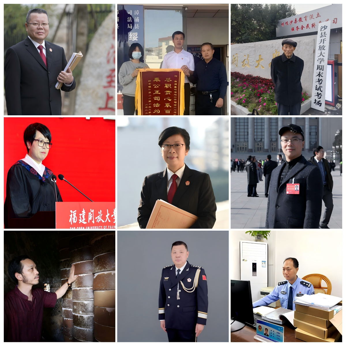 此次入选的9位校友均为各行各业的标杆人物,他们是:时代楷模、老百姓的“知心法官”黄志丽,全国模范法官陈少华,全国脱贫攻坚奋进者郑月娥,福建省最美退役军人刘坤江,警界的尖刀、全国特级优秀人民警察许鸿升,全国优秀人民警察洪树棠,“爷爷同学”、终身学习的践行者邓仰清,传记文学第一人钟兆云,国家级非遗传承人陈明良。